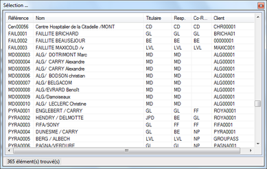 Les fenêtres de sélection du dossier par sa référence et son nom sont illustrées ci-dessous.
