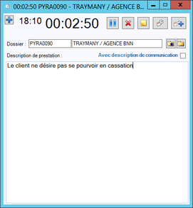 | ◦ | La référence et du nom du dossier si le chronomètre a été lancé depuis un dossier |