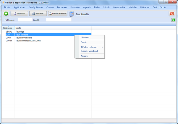 Cliquez sur le bouton Taux d'intérêts : vous obtenez la liste des taux d'intérêts comme illustré ci-dessous.
