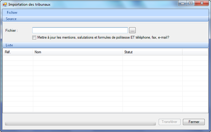 Cliquez sur le bouton Importer tribunaux : vous obtenez la fenêtre illustrée ci-dessous.