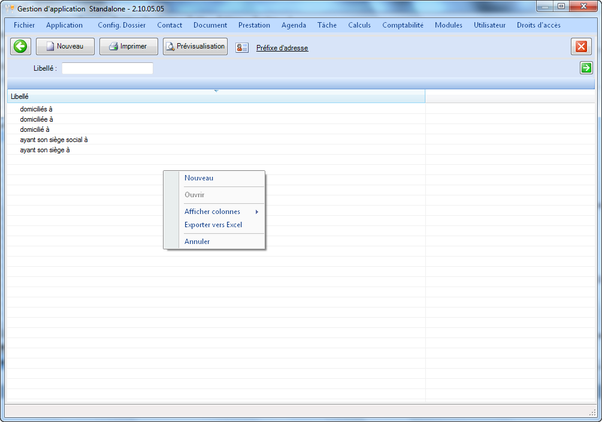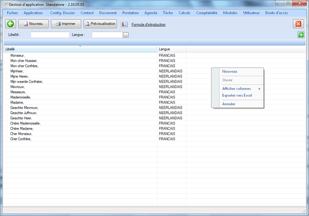 Cliquez sur le bouton Formule d'introduction : vous obtenez la liste des formules d'introduction comme illustré ci-dessous.