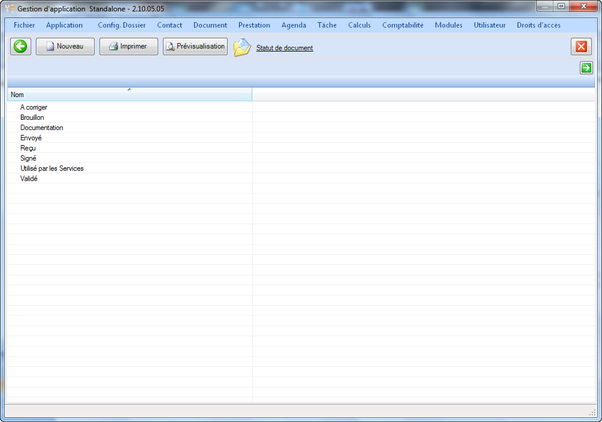 Il est possible de visualiser un aperçu avant impression et d'imprimer la liste des statuts de document ainsi que d'en créer un nouveau.