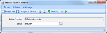 pour faire apparaître une fenêtre listant les divers statuts disponibles pour cette action ou ce contexte. Double-cliquez sur le statut que vous souhaitez associer à l'action ou au contexte et ensuite enregistrez cette association.