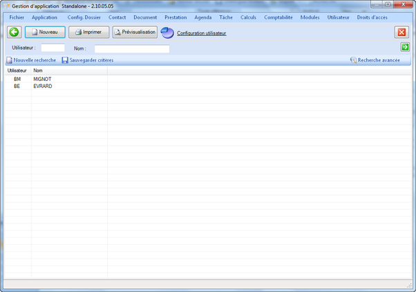 Tableaux de gestion - Configuration utilisateur