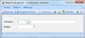 Il est possible de visualiser un aperçu avant impression et d'imprimer la liste des utilisateurs disposant d'un budget ainsi que d'en créer un nouveau. Lors de la création d'un nouvel utilisateur, la fenêtre illustrée ci-après apparaît.