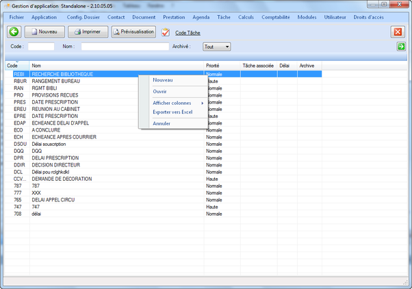 Cliquez sur le bouton Contexte de tâche : vous obtenez la liste des contextes de tâche comme illustré ci-dessous.