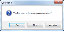 Si l'on quitte la fenêtre de sélection sans avoir choisi un des noms de contacts proposés, une fenêtre proposant de créer un nouveau contact apparaît. Cette est illustrée ci-dessous.