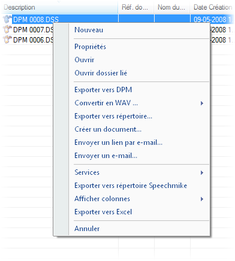 Il est également possible de cliquer sur un de ces mêmes éléments avec le bouton droit de la souris pour ouvrir un menu propre à l'élément et à l'affichage en cours. Ce menu est appelé un menu contextuel et vous offre des fonctions supplémentaires propres à l'élément sélectionné permettant de renommer l'élément, de le supprimer, de changer son état, de le convertir, de le transférer, de l'ouvrir...