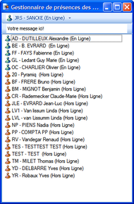 Le gestionnaire de présence est un utilitaire qui permet à un utilisateur connecté à DLex de voir directement qui est également connecté dans le cabinet et avec quel état. Il est également possible de modifier son propre état.