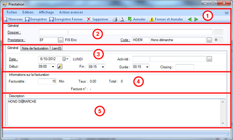 | ▪ | Closing : code ou numéro de closing pour permettre de grouper et facturer un ensemble de prestations. |