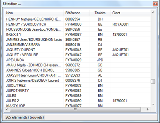 Les fenêtres de sélection du dossier par sa référence et son nom sont illustrées ci-dessous.