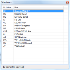 situé à la droite du champ pour ouvrir une fenêtre contenant tous les dossiers qui correspondent au critère de sélection et double cliquez sur le dossier souhaité pour le sélectionner.