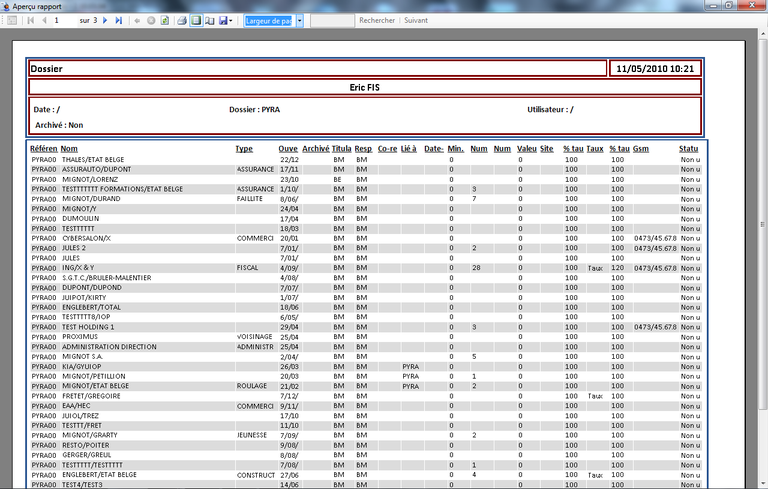 L'aperçu avant impression est également un puissant outil de génération de rapports pour la comptabilité et les prestations. Cette fonctionnalité est expliquée dans le Manuel utilisateur de la comptabilité.