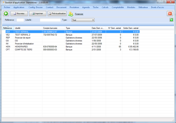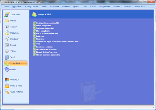 Dans le gestionnaire d’application, les listes du menu comptabilité concerneront la comptabilité à laquelle l’utilisateur courant est lié.