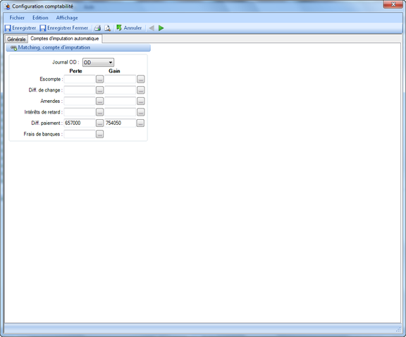 Configuration comptabilité - Comptes d'imputation automatique