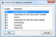 Fenêtre de sélection de la catégorie comptable du compte