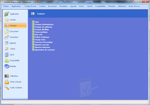 Cliquez sur le bouton Type : vous obtenez la liste des types de contact comme illustré ci-dessous.