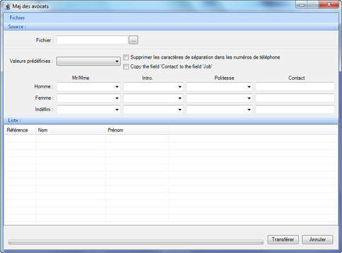 Cliquez sur le bouton Importer avocats : vous obtenez la fenêtre illustrée ci-dessous.