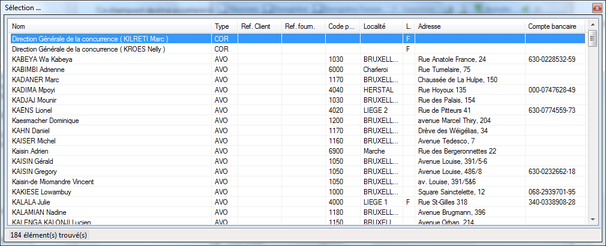 En cliquant sur l'icône de sélection, on obtient une fenêtre contenant tous les contacts dont le nom commence par le (ou les) caractères précisés comme illustré ci-dessous. Double cliquez alors sur le nom souhaité afin de le sélectionner.
